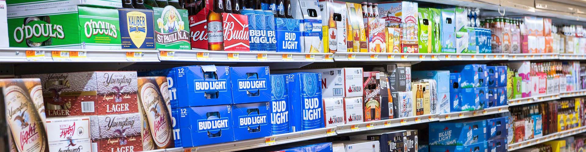 We carry a large variety of beer, mixers, and alcoholic beverages, including: